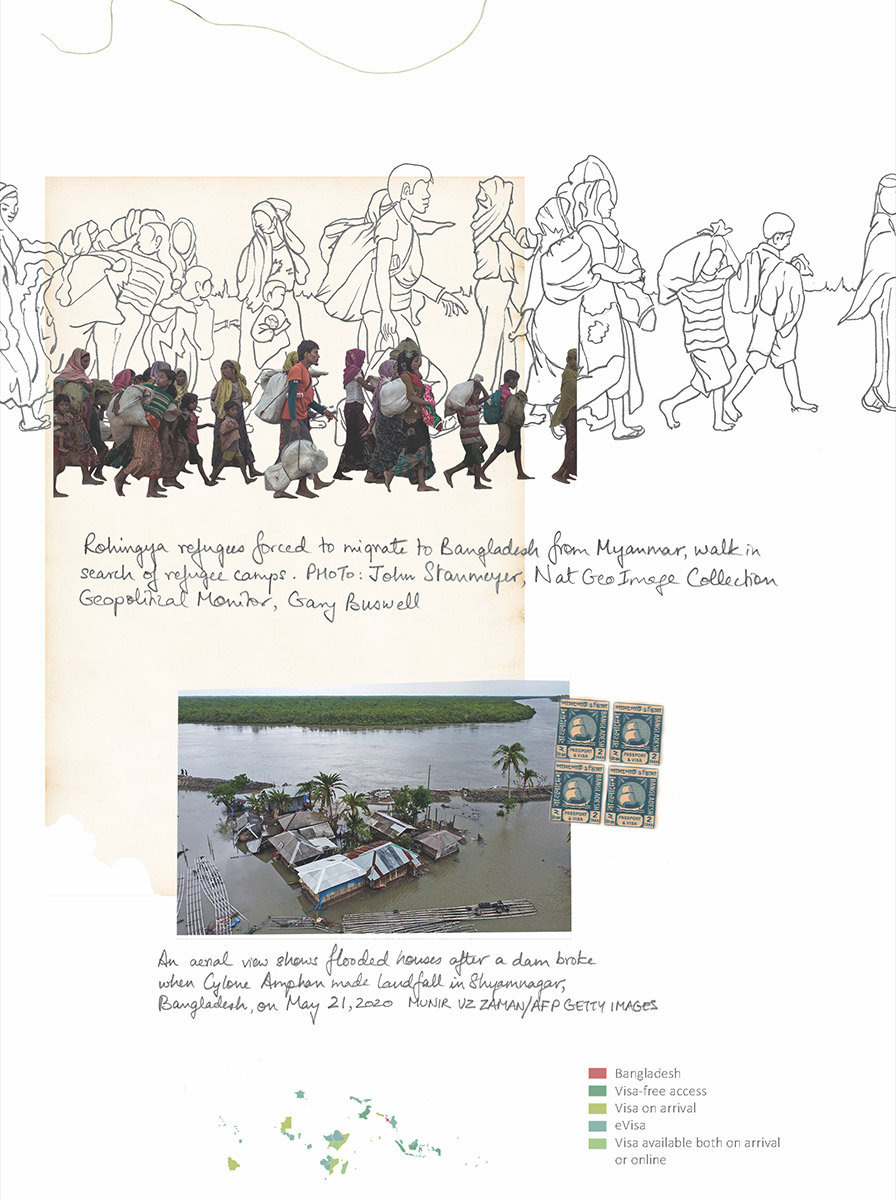 In Reena Saini Kallat’s work, Pattern Recognition, the artist takes a meticulous approach to the subject of social and political borders, documenting and indexing the different rights and privileges relating to international movement afforded to 28 different nations. Through her work, we are encouraged to understand borders not so much as physical fences or barricades but as constraints placed on individuals as a result of policy and privilege.