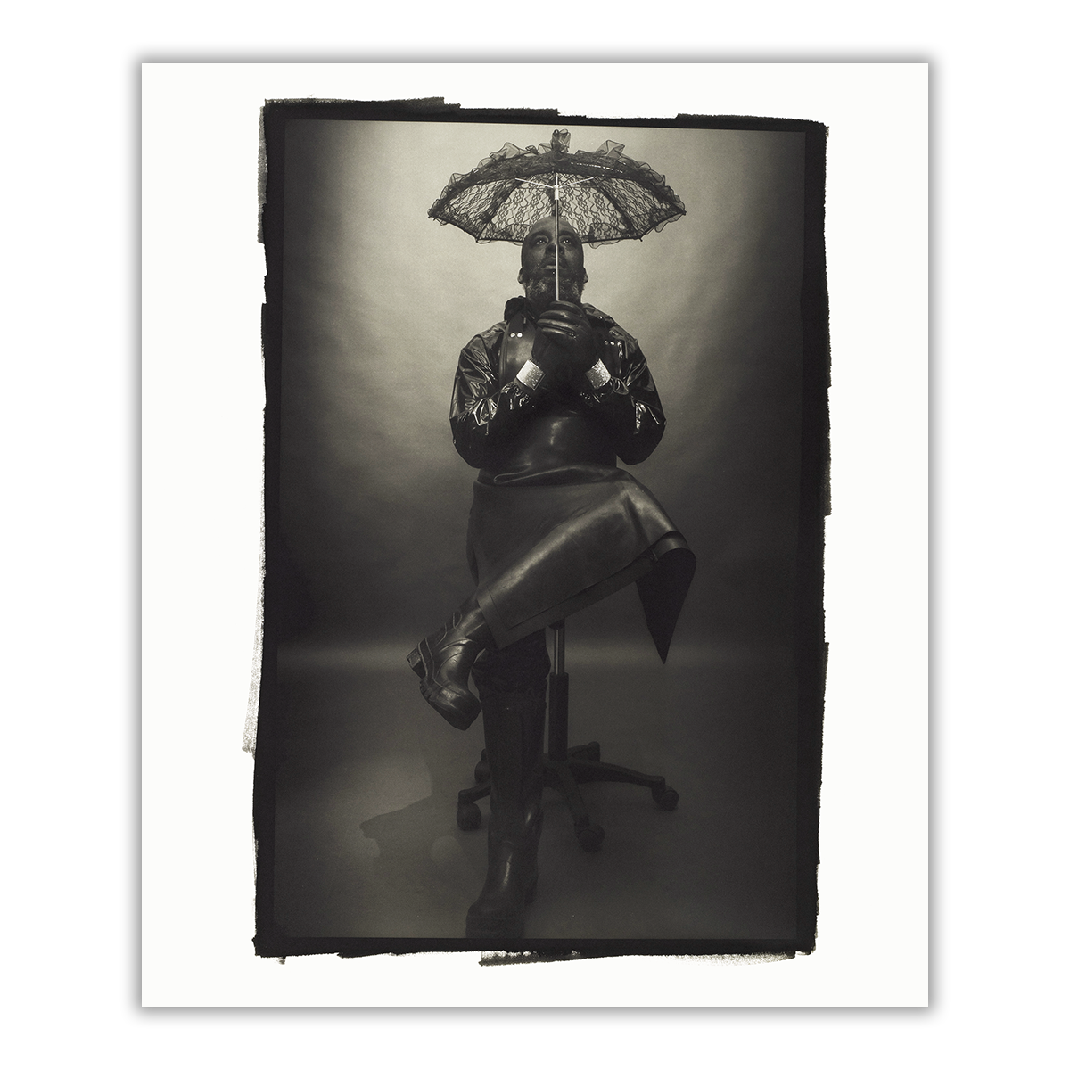 Ajamu posed for, photographed and hand-printed his Autograph commission. The process of creating photography is important in Ajamu's creative practice, and he has said "In the darkroom, I feel an important metaphorical resonance with this medium, the tonality, the depth of the image is alive and such detail opens a space for the viewer to encounter an important aspect of the print, the 'history' of photography in relation to modern day black queer and trans identities." He documented the process of making, and developing, Umbrella, watch below.
