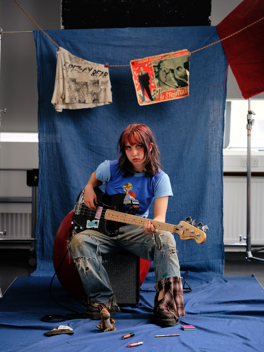 "My image is a reflection on how music, memory and material surroundings have shaped my sense of self. By mimicking my messy bedroom through the incorporation of personal objects such as T-shirts and posters, I encapsulate a moment in time that is familiar to me – playing the same riffs over and over on my guitar."