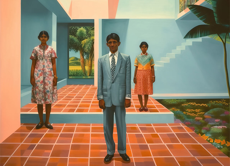Sabrina is a British Mauritian visual artist based in London, working across collage, digital illustration, generative AI art, graphics, film and photography. Her artistic practice is a reflection of her diverse background, weaving together her rich cultural heritage and personal experiences. Rooted in her family history in Mauritius and influenced by the impacts of colonialism, Tirvengadum’s art explores the intricacies of identity, relationships and the human experience.